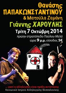 Γιορτάζουμε με μια μεγάλη συναυλία με τους Θανάση Παπακωνσταντίνου και τηΜατούλα Ζαμάνη και με τον Γιάννη Χαρούλη.