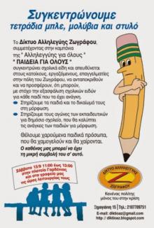 Δράσεις Παιδείας για Όλους Δομή: Δίκτυο Αλληλεγγύης Ζωγράφου Σάββατο, 20 Σεπτεμβρίου, 2014 - 11:00 ως 14:00 Συνδεσμοι: http://diktioaz.blogspot.gr ΔΙΑΔΩΣΤΕ: Tweet ΣΤΟΙΧΕΙΑ ΕΠΙΚΟΙΝΩΝΙΑΣ Πλατεία Αλεξανδρή(Γαρδένιας)Δήμος Ζωγράφου