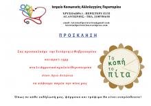 Το Ιατρείο Κοινωνικής Αλληλεγγύης Περιστερίου σας καλεί στην εκδήλωση κοπής πίτας που θα λάβει χώρα στο 1ο Δημοτικό σχολείο Περιστερίου , δίπλα στον Αγιο Αντώνιο , την Τετάρτη 12 Φεβρουαρίου στις 7.15 μ.μ
