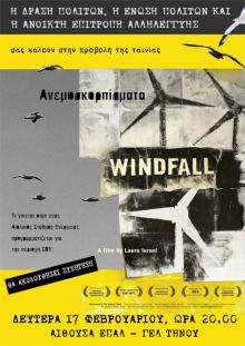 Η Δράση Πολιτών, η Ένωση Πολιτών και η Ανοικτή Επιτροπή Αλληλεγγύης Τήνου σας καλούν στην προβολή της ταινίας WINDFALL. Η προβολή θα πραγματοποιηθεί τη Δευτέρα, στις 20.00 η ώρα, στην αίθουσα Πολλαπλών Χρήσεων του ΕΠΑΛ και ΓΕΛ ΤΗΝΟΥ. Θα ακολουθήσει συζήτηση.Σας στέλνουμε την αφίσα της ταινίας για να την αναρτήσετε στον χώρο σας.