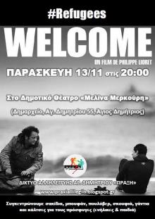 Την Παρασκευή 13 Νοεμβρίου, στις 8 μ.μ. στο Δημοτικό Θέατρο Αγίου Δημητρίου «Μελίνα Μερκούρη» (Αγ. Δημητρίου 55), το Δίκτυο Αλληλεγγύης Αγίου Δημητρίου ΠΡΑΞΗ θα πραγματοποιήσει προβολή της πολυβραβευμένης ταινίας Welcome (2009) του Philippe Lioret.