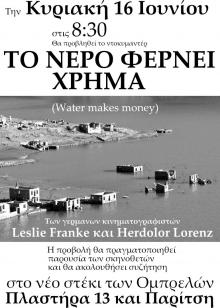 Προβολή του ντοκιμαντέρ "ΤΟ ΝΕΡΟ ΦΕΡΝΕΙ ΧΡΗΜΑ", την Κυριακή 16/6 στον εξωτερικό χώρο του στεκιού των ΟΜΠΡΕΛΩΝ, στο Ν. Ψυχικό, Ν. Πλαστήρα 13 & Παρίτση. Η ταινία είναι διάρκειας 90΄, με ελληνικούς υπότιτλους και μετά την προβολή θα υπάρχει συζήτηση με τους προσκεκλημένους μας Γερμανούς δημιουργούς της ταινίας.