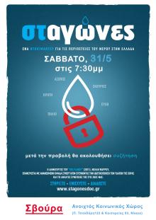 Ο ΠΟΛΕΜΟΣ ΤΟΥ ΑΥΡΙΟ, ΣΗΜΕΡΑ θα μπορούσε να είναι ο τίτλος αυτού του ντοκιμαντέρ. Στις ΣΤΑΓΩΝΕΣ θα μάθετε ότι ο πόλεμος του νερού δεν είναι ένα πιθανό σενάριο από το μακρινό μέλλον, αλλά μια πραγματικότητα που βιώνουν συμπολίτες μας εδώ και χρόνια. Τώρα, έφτασε στις πόρτες όλων μας. Ο τίτλος του ντοκιμαντέρ, το διφορούμενο μήνυμα αναφορικά με τους αγώνες που γίνονται για τις σταγόνες της ζωής, αναφέρεται ακριβώς σε αυτό: στους αθέατους αγώνες συμπολιτών μας, στις ιστορίες που δεν είδαν το φως της δημοσιότητας, στην ανεπίστρεπτη καταστροφή του νερού που συντελείται στο όνομα της “ανάπτυξης” και, συχνά, δεν εντάχτηκε ούτε στην προβληματική των κινημάτων που υπερασπίζονται τον δημόσιο χαρακτήρα του νερού. Είπαμε: η ιδιωτικοποίηση έχει και μια αθέατη πλευρά, πιο καίρια και χρόνια από οτιδήποτε άλλο.