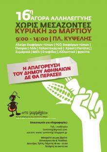 Έτσι συμμετέχουμε και ενισχύουμε τη 16η αλληλέγγυα αγορά Χωρίς Μεσάζοντες την Κυριακή 20/3 στην πλατεία Κυψέλης αντιτιθέμενοι στην πράξη στην απαράδεκτη απόφαση του Δήμου.