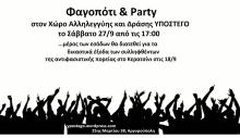 Φαγοπότι & Πάρτυ στο Υπόστεγο Σάββατο, 27 Σεπτεμβρίου, 2014 - 17:00...μέρος των εσόδων θα διατεθεί για οικονομική ενίσχυση των συλληφθέντων στο Κεραίτσίνι ΔΙΑΔΩΣΤΕ: Tweet Συνδεσμοι: http://ypostego.wordpress.com/ ΣΤΟΙΧΕΙΑ ΕΠΙΚΟΙΝΩΝΙΑΣ 25ης Μαρτίου 38