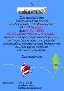 Χριστουγεννιάτικο Bazaar Δικτύου Αλληλεγγύης ΗΛΙΟΥ-πόλις