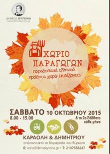 Το Σάββατο 10 Οκτωβρίου θα διεξαχθεί το “Χωριό Παραγωγών”, στο πάρκο της Καραολή και Δημητρίου με ωράριο 8 πμ – 3 μμ.. Μπορείτε να προμηθευτείτε ποιοτικά προϊόντα σε προσιτές τιμές, ενώ μέρος των προϊόντων διατίθεται στα δίκτυα αλληλεγγύης της πόλης μας. Επίσης, στο “Χωριό Παραγωγών”, το Δίκτυο Αλληλεγγύης ανταλλάσσει βιβλία με 1 λίτρο λάδι. Αγοράζοντας δηλαδή 1 λίτρο λάδι από τον παραγωγό ή από όπου θέλετε, το προσφέρετε στους ανθρώπους του δικτύου, οι οποίοι σας δίνουν ένα βιβλίο.