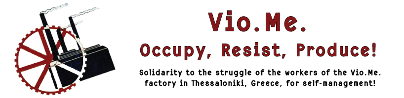 [Να διευκρινίσουμε, μετά από ενημέρωση που λάβαμε, ότι το λαϊκό γλέντι της Κυριακής 15/2 στο ελεύθερο εργοστάσιο της ΒΙΟΜΕ, θα ξεκινήσει μισή ώρα νωρίτερα, στις 14.30, με την φιλική συμμετοχή του Θανάση Παπακωνσταντίνου. Να σημειώσουμε ότι τόσο ο Θανάσης όσο και ο Δημήτρης Ζερβουδάκης για δεύτερη φορά συμμετέχουν αφιλοκερδώς σε συναυλία ενίσχυσης του αγώνα μας. Τους ευχαριστούμε από καρδιάς]