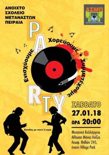 Χορεύουμε, συμμετέχουμε, ενισχύουμε, σε πείσμα των καιρών... Το Ανοιχτό Σχολείο Μεταναστών Πειραιά σας καλεί στο ετήσιο πάρτι του για τέταρτη συνεχόμενη χρονιά, στο φιλόξενο χώρο της Μηχανικής Καλλιέργειας και στην Αίθουσα ''Μάνος Λοΐζος" (Θηβών 245 - έναντι Village Park), το Σάββατο 27 Ιανουαρίου 2018 και ώρα 8μ.μ.