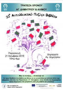 Η Τράπεζα Χρόνου Αγ. Δημητρίου & Αλίμου σας προσκαλεί αυτή την Παρασκευή 21 Οκτωβρίου και ώρα 10πμ με 4μμ στο χώρο του Δημαρχείου Αγ. Δημητρίου για να ανταλλάξουμε μυθιστορήματα, διήγηματα, σχολικά βοηθήματα και κάθε λογής βιβλία!