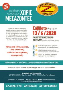 Το Σάββατο 13/06/2020 πραγματοποιείται η 25η διανομή τροφίμων χωρίς μεσάζοντες από το Δίκτυο Αλληλεγγύης Ζωγράφου. Η κίνηση επιδιώκει να αναδείξει μια άλλη κοινωνική και οικονομική σχέση μεταξύ των παραγωγών και των πολιτών. Δε θέλει να υποκαταστήσει τους εμπόρους στην πόλη. Στηρίζουμε την αγορά της πόλης και ψωνίζουμε από τους επαγγελματίες της. Αυτοί με τη σειρά τους πρέπει να στηρίξουν την τοπική κοινωνία με προσιτές τιμές.