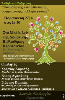 Εκδήλωση - συζήτηση: "Κοινότητες εκπαίδευσης, συμμετοχής, αλληλεγγύης" (27/4)