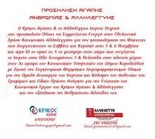 Σκοπός η συγκέντρωση φαρμάκων, ιατροφαρμακευτικού υλικού για την ομαλή λειτουργία του Ιατρείου και κάλυψης των ασθενών του, αλλά και τροφίμων και ειδών πρώτης ανάγκης για την ενίσχυση του κοινωνικού έργου του Κρίκου Αγάπης και Αλληλεγγύης και την εξάπλωση της ανθρώπινης αλυσίδας του.