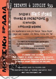 Γιορτάζουμε τα πέντε χρόνια εθελοντικής προσφοράς για τον πολιτισμό, το περιβάλλον και την κοινωνία και σας περιμένουμε όλες και όλους για να μοιραστούμε μαζί σας τη χαρά μας. Η γιορτή, με ελεύθερη είσοδο,  θα περιλαμβάνει πλούσιο καλλιτεχνικό με δύο μουσικά συγκροτήματα και θα πραγματοποιηθεί την Τετάρτη 6 Ιουλίου 9μμ, δίπλα στη θάλασσα, στο ανοιχτό θέατρο “Σοφία Βέμπο”, στην παραλιακή λεωφόρο, στη Βούλα, ανάμεσα στο Ναυτικό Όμιλο Βούλας και το "Bo".