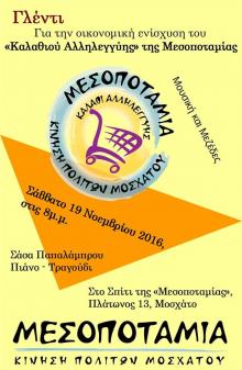 Το Σάββατο 19 Νοεμβρίου, στις 8μ.μ. σας καλούμε να γλεντήσουμε μαζί, στο Σπίτι της Μεσοποταμίας, Πλάτωνος 13, Μοσχάτο, με τη Σάσα Παπαλάμπρου, σε πιάνο και τραγούδι. Μέλη του "Καλαθιού αλληλεγγύης" θα έχουν ετοιμάσει πιάτα με μεζέδες, για την οικονομική ενίσχυση του καλαθιού αλληλεγγύης.
