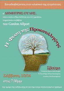 Ο κοινωνικός ανθρωπολόγος και συγγραφέας Δημήτρης Ουλής, θα επιχειρήσει μια παρουσίαση του βιβλίου “Η Φύση της Προκατάληψης” του κοινωνικού ψυχολόγου Gordon Allport. Πρόκειται για βιβλίο κλασικό, καθώς ερευνά το πρόβλημα της προκατάληψης και των στερεοτύπων με τον πλέον συστηματικό, άμεσο και πλήρη τρόπο. Με δεδομένο ότι το βιβλίο δεν έχει μεταφραστεί ακόμα στα ελληνικά, η σημερινή παρουσίαση φιλοδοξεί να είναι – μεταξύ άλλων- και ένα είδος τιμητικού αφιερώματος για τα 60 χρόνια από την πρώτη έκδοσή του (1954). Την ίδια στιγμή όμως, η σημερινή παρουσίαση θα ήθελε να είναι και μία υπόμνηση της διαρκούς επικαιρότητας του προβλήματος, καθώς και της αναγκαιότητας να επιστρατεύουμε πάντοτε τα καλύτερα θεωρητικά εργαλεία που διαθέτουμε για την αντιμετώπισή του.