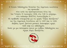 Η Κίνηση Αλληλεγγύης Πατησίων 5ης Δημοτικής Κοινότητας σας προσκαλεί στην κοπή της πρωτοχρονιάτικης πίτας της, την Τετάρτη 31 Ιανουαρίου 2018, στις 7 το απόγευμα, στον πολυχώρο ΕΚΣΤΑΝ, Καυταντζόγλου 5.