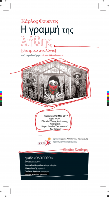 Σας ενημερώνουμε, ότι η προγραμματισμένη για τις 12 Μαΐου 2017 θεατρική παράσταση «Η γραμμή της λήθης» δεν πρόκειται να δοθεί. Η ματαίωση οφείλεται στο ότι προέκυψε τεχνικό πρόβλημα στο χώρο που επρόκειτο να δοθεί η παράσταση, με αποτέλεσμα η αίθουσα να έχει καταστεί εντελώς ακατάλληλη για την συγκεκριμένη εκδήλωση.