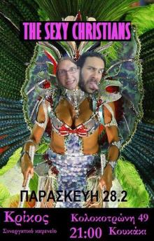The Sexy Christians Παρασκευή, 28 Φεβρουαρίου, 2014 - 21:00Συνδεσμοι: http://kafeneiokrikos.gr ΔΙΑΔΩΣΤΕ: Tweet ΣΤΟΙΧΕΙΑ ΕΠΙΚΟΙΝΩΝΙΑΣ Γενναίου Κολοκοτρώνη 49Δήμος Αθηναίων