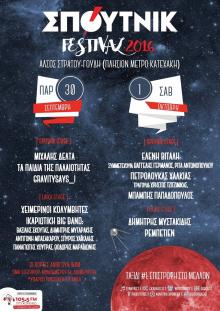 Το «Σπούτνικ Festival 2016» είναι γεγονός και έρχεται στο Άλσος Στρατού στο Γουδή στις 30/9 – 1/10 2016. Αφού τα πρώτα τεύχη του περιοδικού μας ταξίδεψαν και διαβάστηκαν σε ολόκληρη την Ελλάδα, διοργανώνεται στην Αθήνα μια γιορτή αλληλεγγύης και συμμετοχής, μία γιορτή της ριζοσπαστικής αριστεράς που προβάλει ένα διαφορετικό μοντέλο ψυχαγωγίας, απέναντι στην εμπορευματοποίηση της διασκέδασης και του ελεύθερου χρόνου.