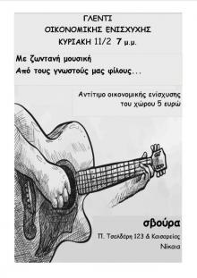 Γλέντι στη σβούρα για την οικονομική της ενίσχυση, στις 11/2, στις 7μμ. Με μουσική από τους γνωστούς μας φίλους... Αντίτιμο οικονομικής ενίσχυσης του χώρου 5 ευρώ. Σας περιμένουμε με ζεστή παρέα, νοστιμους μεζέδες και όμορφες μελωδίες..