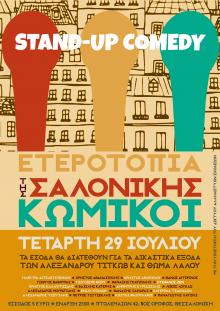 Είκοσι κωμικοί της Θεσσαλονίκης, ενώνουν τα αστεία τους για μια μοναδική παράσταση αλληλεγγύης, στην ταράτσα της Ετεροτοπίας.