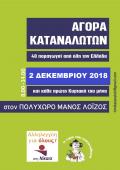 Με 40 παραγωγούς από όλη την Ελλάδα και με μια πολύ μεγάλη γκάμα προϊόντων, την Κυριακή 2 Δεκεμβρίου 2018 (και κάθε πρώτη Κυριακή του μήνα), θα είναι πάλι κοντά μας η Αγορά Καταναλωτών στον Πολυχώρο...
