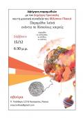 Για τη συλλογή θα μιλήσει ο συγγραφέας Δημήτρης Β. Προύσαλης και θα ακολουθήσει προφορική αφήγηση από επιλεγμένες ιστορίες του βιβλίου με τη μουσική συνοδεία του Φίλιππου Πλακιά.Τα...