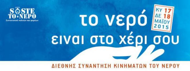 Στη Θεσσαλονίκη αναμένεται να βρεθούν τα ελληνικά και ευρωπαϊκά κινήματα του νερού σε μια συνάντηση με κεντρικό σύνθημα «το νερό είναι στο χέρι σου», συνεχίζοντας την προσπάθεια να κατοχυρωθεί η κτήση του νερού ως κοινό αγαθό. Στη Θεσσαλονίκη αναμένεται να βρεθούν διεθνείς αντιπροσωπείες στις οποίες θα συμμετάσχουν πολίτες από τις Βρυξέλλες, την Ιταλία, τη Γαλλία, την Ιρλανδία, την Ισπανία, ενώ θα συμμετέχουν και τα Ευρωπαϊκά συνδικάτα. Ισχυρή αναμένεται να είναι και η παρουσία των ακτιβιστών του νερού και από άλλες ελληνικές πόλεις μεταξύ των οποίων η Δράμα, ο Βόλος και η Βέροια.