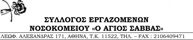 Ανακοίνωση Συλλόγου Εργαζομένων Νοσοκομείου Αγίου Σάββα