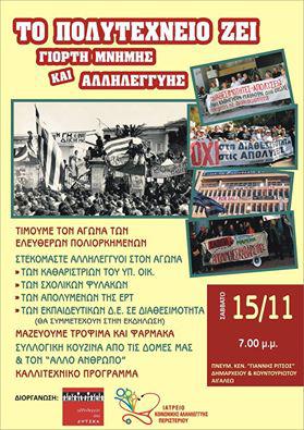 Το πολυτεχνείο είναι φάρος για όσους αγωνίζονται σήμερα για το δικαίωμα τους στη δουλειά στην αξιοπρέπεια για το δικαίωμα τους στη ζωή.