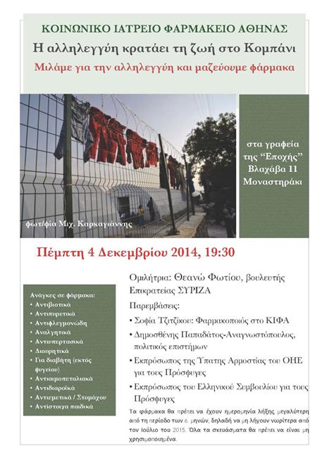 Εκδήλωση Κοινωνικού Ιατρείου Φαρμακείου Αθήνας για το Κομπάνι