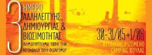 Το Εναλλακτικό Φεστιβάλ Αλληλέγγυας & Συνεργατικής Οικονομίας σας καλεί στο πρώτο τριήμερο Αλληλεγγύης, Δημιουργίας και Βιωσιμότητας που θα πραγματοποιηθεί στο Αυτοδιαχειριζόμενο Κάμπινγκ Βούλας από 30 Μαϊου έως 1 Ιουνίου 2014.