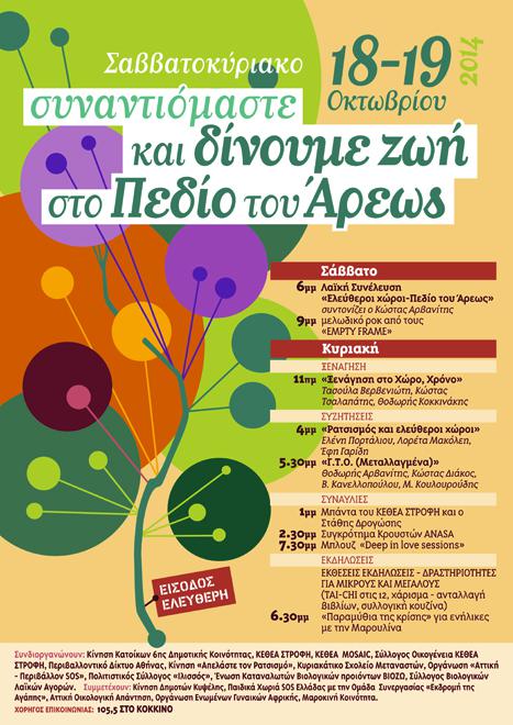To Σαββατοκύριακο 18 ,19 Οκτωβρίου 2014 συναντιόμαστε και δίνουμε ζωή στο Πεδίο του Άρεως.
