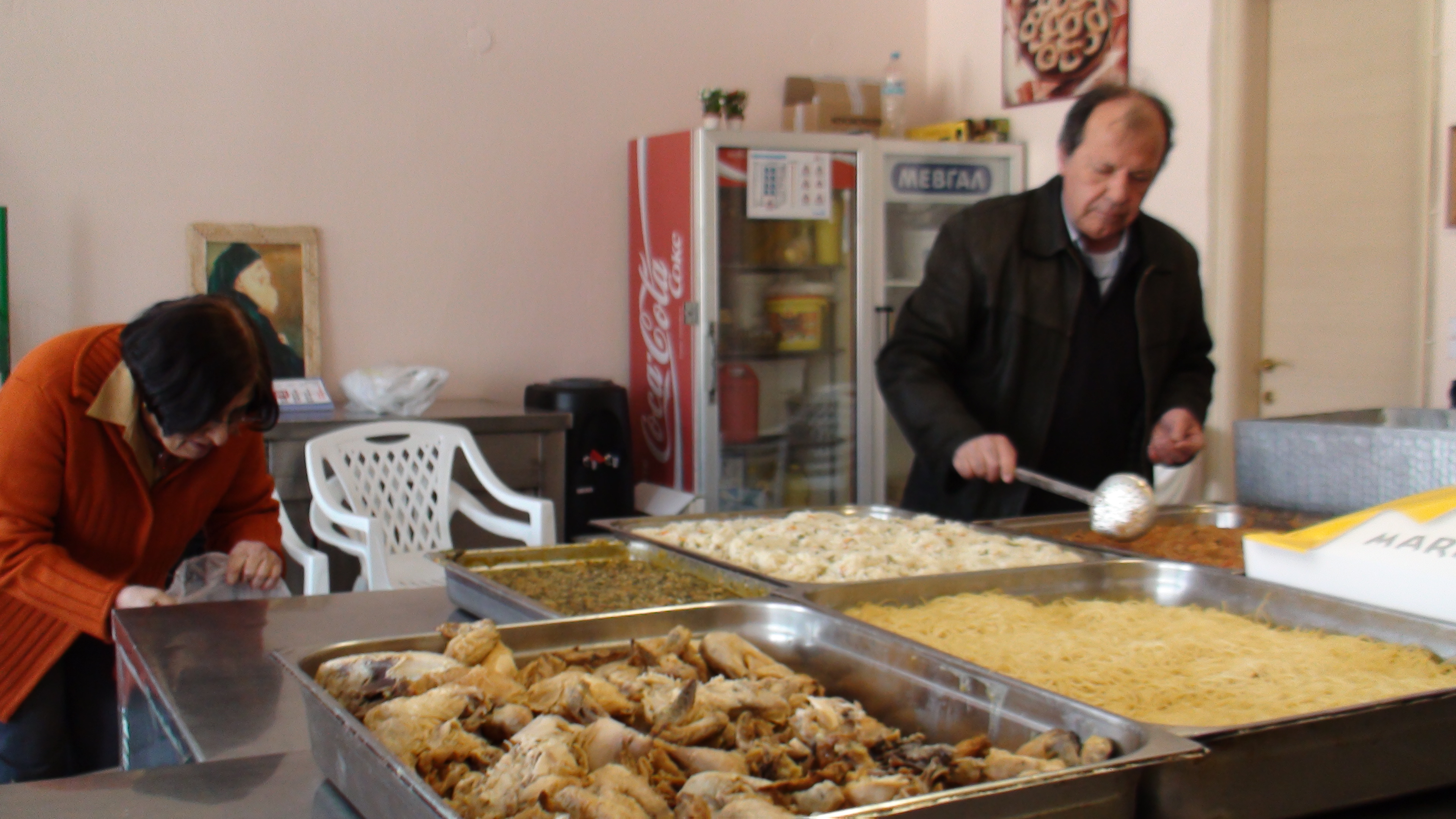 Ενδιαφέρον έχει και η προσφορά σε τρόφιμα και φαγητό που γίνεται με τους πιο ευφάνταστους τρόπους. «Πηγαίνω στην λαχαναγορά και γεμίζω κάθε φορά ένα φορτηγό τρόφιμα, το ίδιο και στην ψαραγορά μου δίνουν μισό τόνο ψάρια για τον σκοπό αυτό. Έχουμε καταφέρει να μας δίνονται δωρεά ακόμη και τα κατασχεμένα ψάρια του Λιμεναρχείου, πρόκειται για ψάρια παράνομης αλιείας που είτε θα πετάγονταν ξανά στην θάλασσα είτε θα δίνονταν σε κοινωνικά δίκτυα»