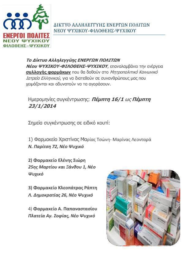 Συλλογή φαρμάκων από το Δίκτυο Αλληλεγγύης ΕΝΕΡΓΩΝ ΠΟΛΙΤΩΝ