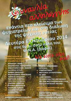 Διοργανώνεται το απόγευμα της Δευτέρας 6 Οκτωβρίου στην πύλη του Ψυχιατρικού Νοσοκομείου Αττικής (ΨΝΑ), στις 6 μ.μ.