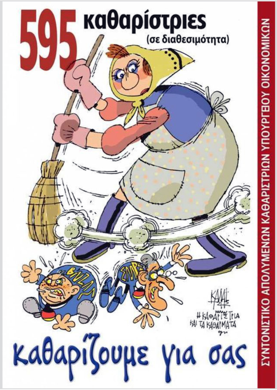 Η αφίσα του αγώνα των καθαριστριών με το σκίτσο του «δικού μας» Γιάννη Καλαϊτζή, που έκανε τον γύρο του Διαδικτύου σε Ελλάδα και Ευρώπη