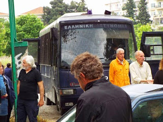 Αστυνομικές δυνάμεις (με κλούβα) με εισαγγελική εντολή, όπως μας δήλωσαν, κατέστειλαν σήμερα την αγορά χωρίς μεσάζοντες του Αγροτικού Παντοπωλείου στην Καλαμαριά.
