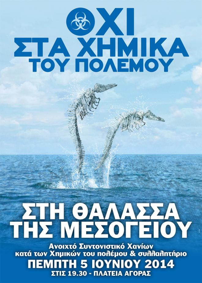 To Aνοιxτό Συντονιστικό Χανίων κατά των Χημικών του πολέμου καλεί, την Πέμπτη 5/6 στις 19.30 σε Συλλαλητήριο κατά των Χημικών στην Πλατεία της Αγοράς.