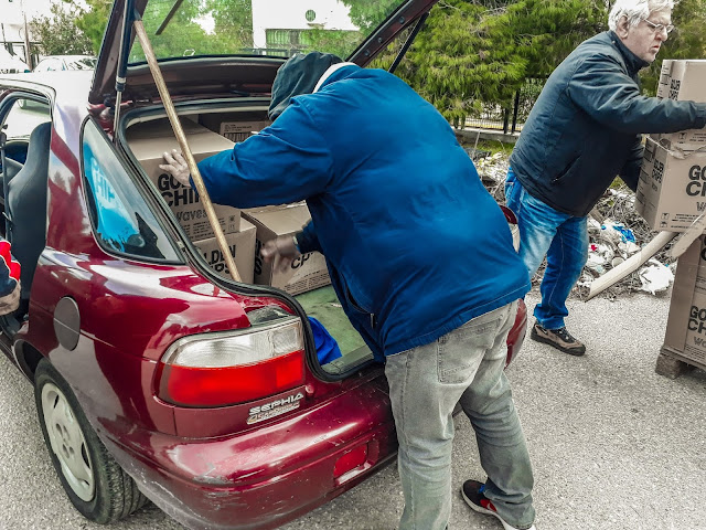 Το διήμερο 19 και 20 Δεκέμβρη 2018, στον χώρο της αποθήκης του ΚΤΕΟ Μάνδρας Αττικής, ενισχύθηκαν με τρόφιμα: