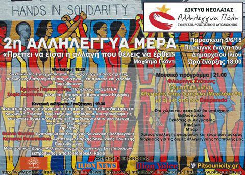 Η 2η «Αλληλέγγυα Μέρα» είναι γεγονός και θα πραγματοποιηθεί την Παρασκευή 5 Ιουνίου 2015, στο πάρκινγκ απέναντι από το Δημαρχείο Ιλίου, στη συμβολή των οδών Χρυσηίδος, Νέστορος, Πάριδος.