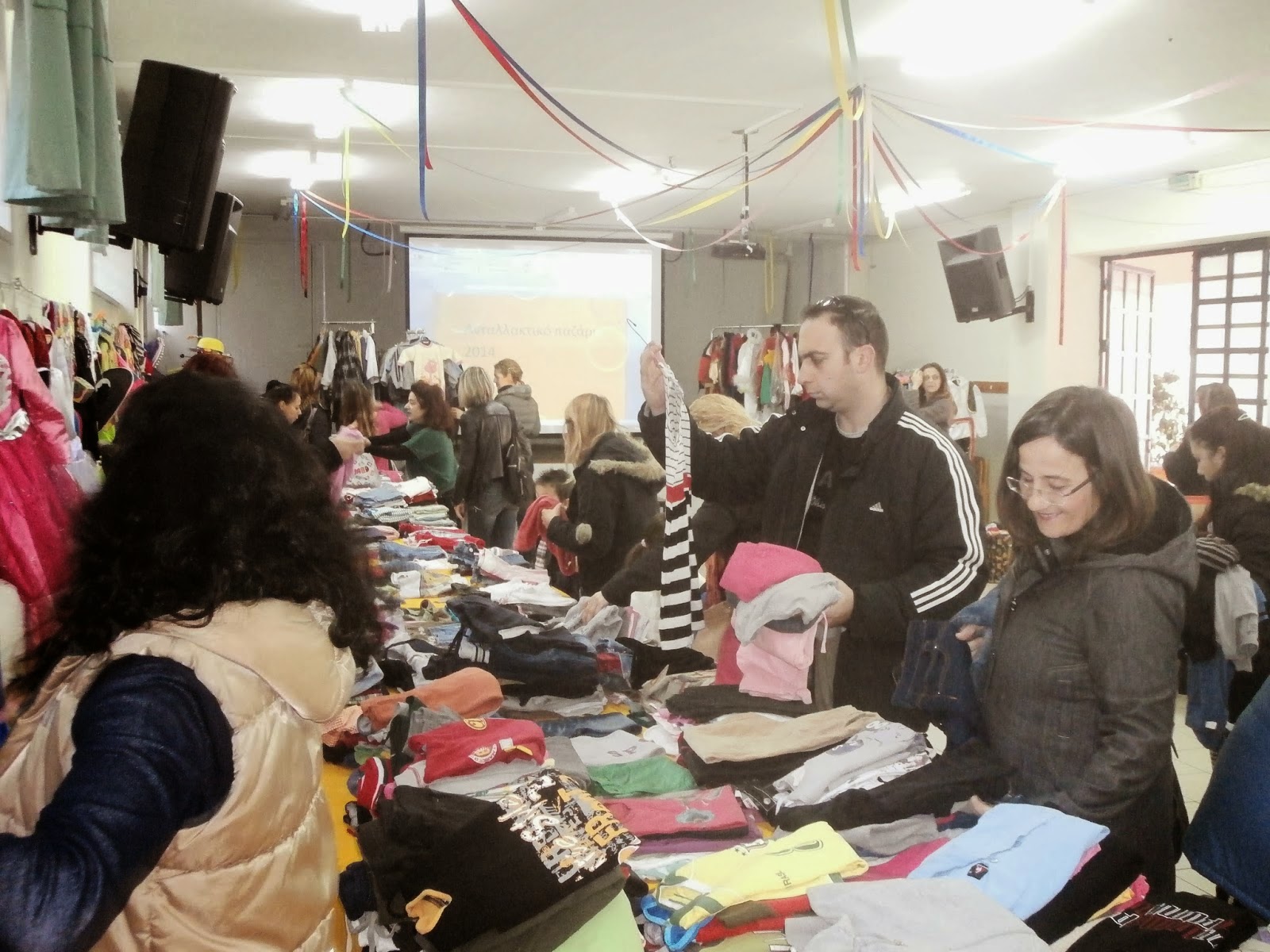 Αποχωριζόμαστε και αναζητούμε ρούχα (βρεφικά, παιδικά, ενηλίκων), παιδικά παπούτσια, σχολικά είδη (τσάντες, κασετίνες), παιχνίδια κάθε είδους, βιβλία, CD, επιτραπέζια παιχνίδια, αποκριάτικες στολές, παζλ, DVD για παιδιά και ενηλίκους.