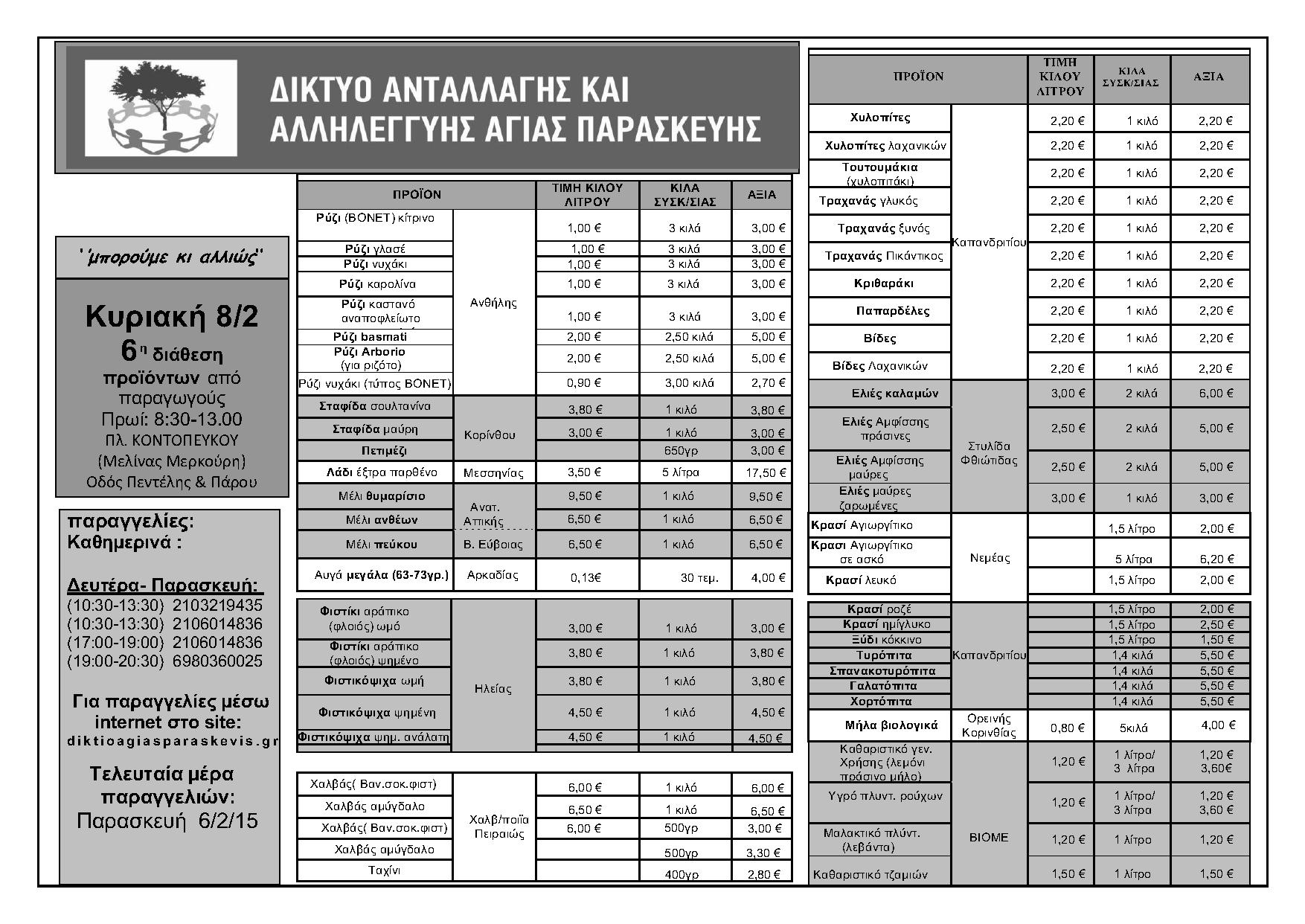 6η Διάθεση προιόντων Χωρίς Μεσάζοντες στην Αγίας Παρασκευής