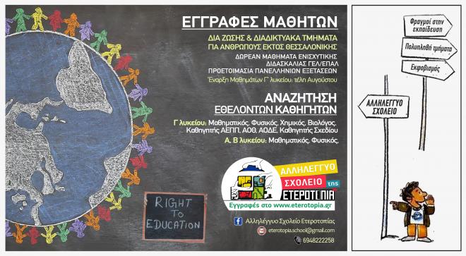 Το Αλληλέγγυο Σχολείο Ετεροτοπίας -Συνεχίζει την αναζήτηση καθηγητών!