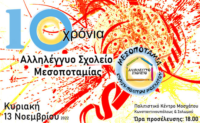 Με αφορμή τη συμπλήρωση 10 χρόνων λειτουργίας, το Αλληλέγγυο Σχολείο διοργανώνει μια γιορτή την Κυριακή 13 Νοεμβρίου στις 6 μ.μ. στο Πολιτιστικό Κέντρο Μοσχάτου (σύνδεσμος εκδήλωσης https://fb.me/e/30JaZa5G3 ).