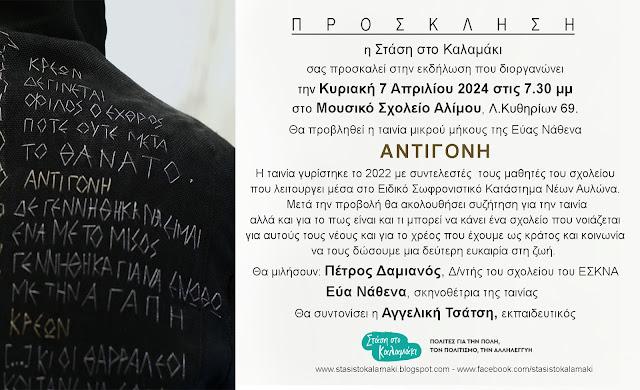 Θα προβληθεί η ταινία μικρού μήκους ΑΝΤΙΓΟΝΗ της Εύας Νάθενα.