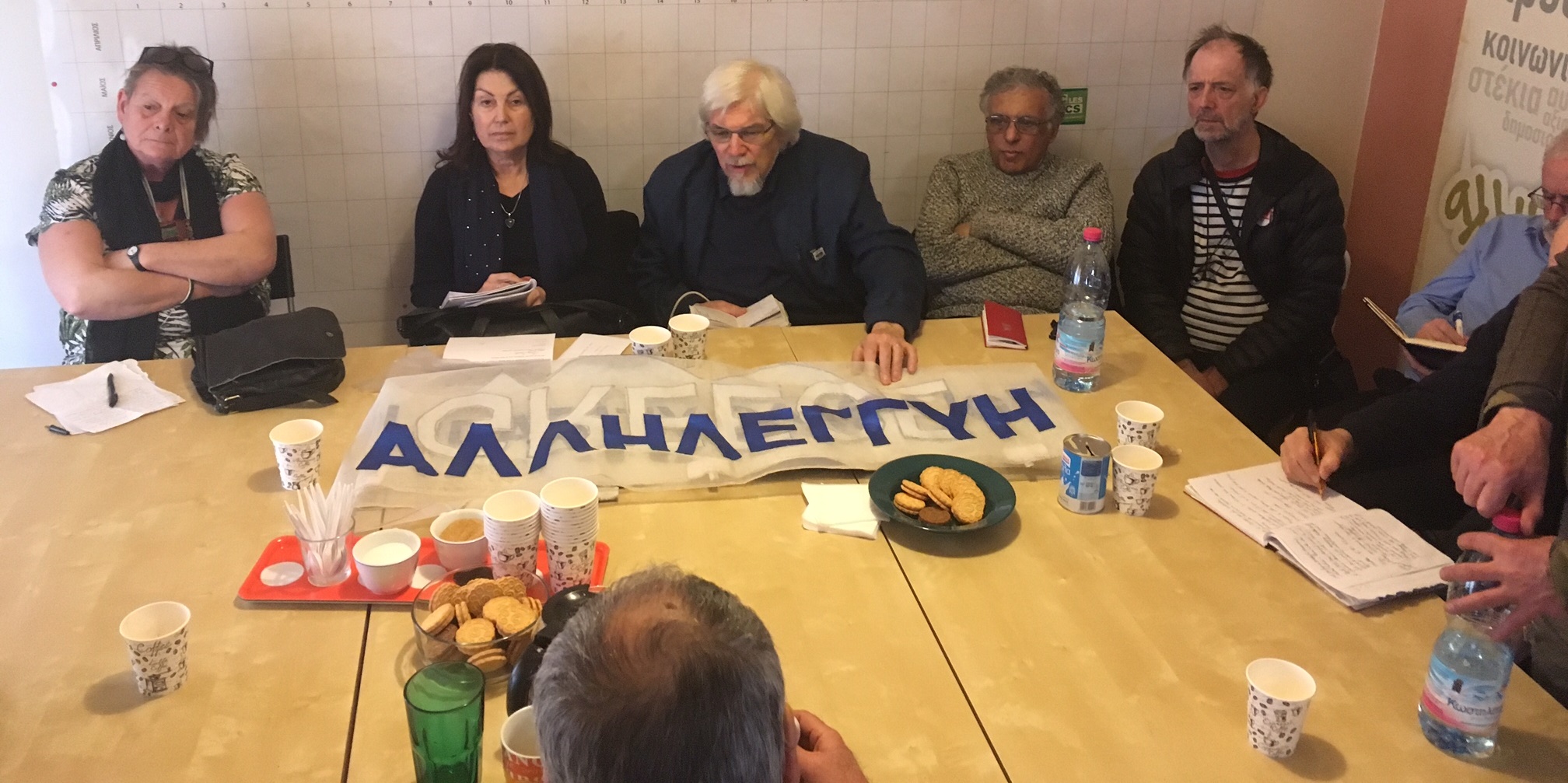 Τα γραφεία της «Αλληλεγγύης για Όλους» επισκέφθηκαν εκπρόσωποι της βρετανικής κινηματικής πρωτοβουλίας «Greece Solidarity Campaign» προκειμένου να συζητήσουν με τα μέλη της «ΑγΟ» για τη σημερινή κατάσταση στην Ελλάδα και στη Βρετανία, ν’ ανταλλάξουν εμπειρίες και απόψεις, αλλά και να συζητήσουν τις εντυπώσεις που αποκόμισαν έπειτα από την επίσκεψή τους στο Κέντρο Φιλοξενίας Προσφύγων του Σκαραμαγκά, καθώς και άλλες δομές κοινωνικής αλληλεγγύης της χώρας μας. Στην 8μελή αποστολή της πρωτοβουλίας, συμμετείχαν οι: Ισίδωρος Διακίδης, Mike Davis, Cherry Sewell, Paul Mackney, Bob Littlewood, Wendy Pettifor, David Kirkby και Naeem Malik.