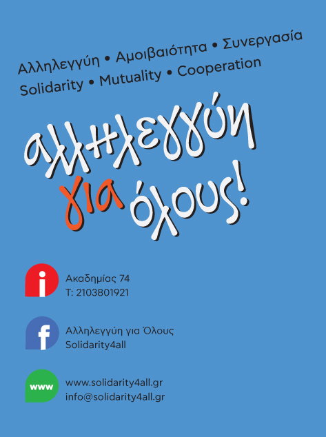 Η Αθήνα ευρωπαϊκή πρωτεύουσα της Κοινωνικής Αλληλέγγυας Οικονομίας (9-11/6): http://www.solidarity4all.gr/el/event/i-athina-eyropaiki-proteyoysa-tis-koinonikis-allileggyas-oikonomias-9-116