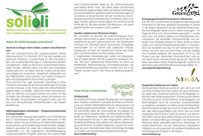 Σύμφωνα με τους διοργανωτές: "Μπορεί από τα γερμανικά ΜΜΕ το ενδιαφέρον για τις εξελίξεις στην Ελλάδα να έχει υποχωρήσει, αλλά η κατάσταση εκεί παραμένει κρίσιμη εφόσον η Τρόικα και η γερμανική κυβέρνηση συνεχίζουν να παροτρύνουν τις περικοπές στην κοινωνική πρόνοια. Η καμπάνια απευθείας διάθεσης προϊόντων από συνεταιρισμούς είναι ένα βήμα, ένα σημείο εκκίνησης του αλληλέγγυου τρόπου εργασίας και είναι η αρχή για να επεκτείνουμε αυτά τα μικρά βήματα προς μια οικονομία της αλληλεγγύης".